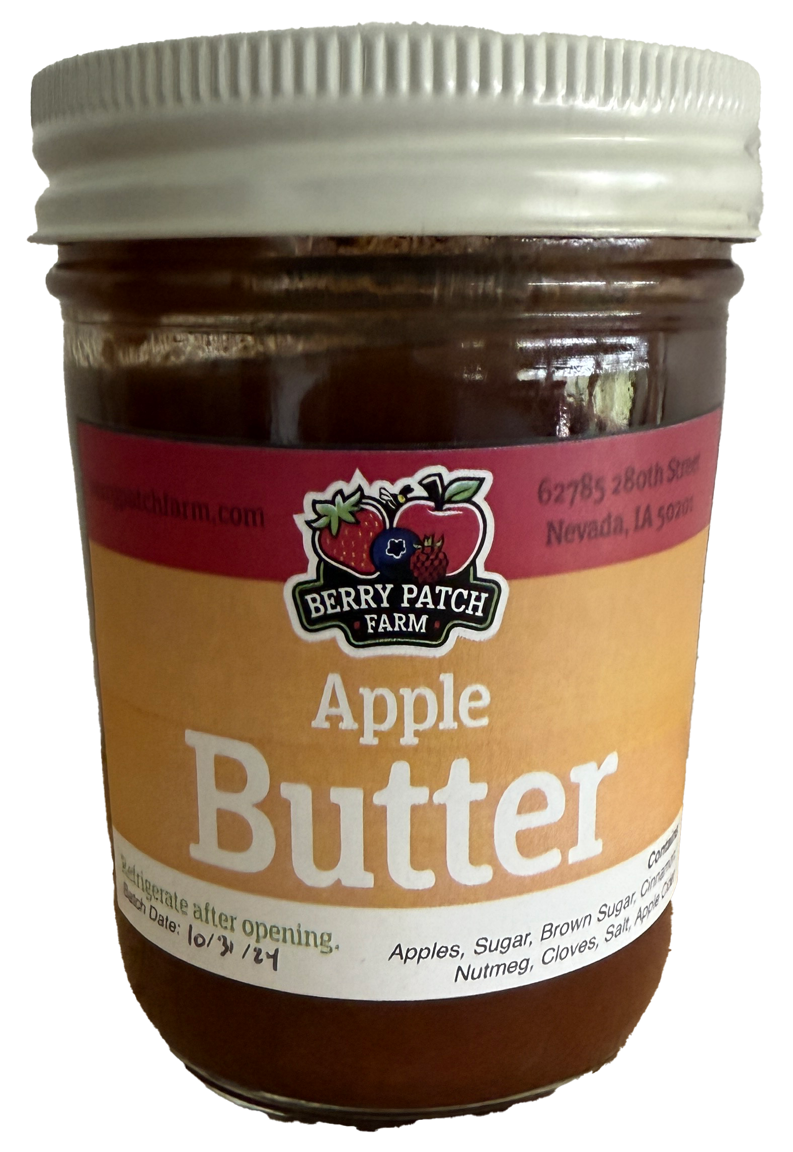 A rich, slow-cooked spread made from ripe apples and warm spices, simmered down to a smooth, deeply flavored finish.
